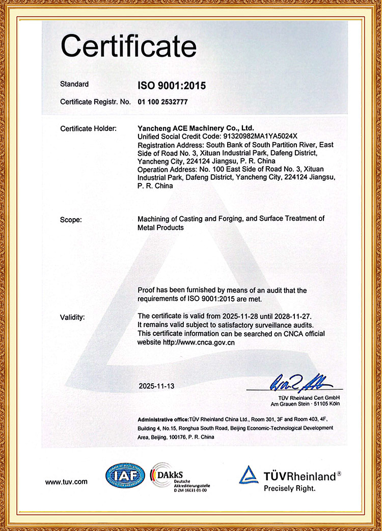 ACE Group is a comprehensive enterprise group focused on the heavy industrial manufacturing sector, serving as a China Elektrická energia Energetické výkovky Manufacturers and Elektrická energia Energetické výkovky Factory. Its business spans forging, heat treatment, precision machining, welded structures, and heavy-duty power & free chain spraying production. This integrated layout covers the core production processes of the industrial machinery industry, combining technological strength with large-scale production capabilities.